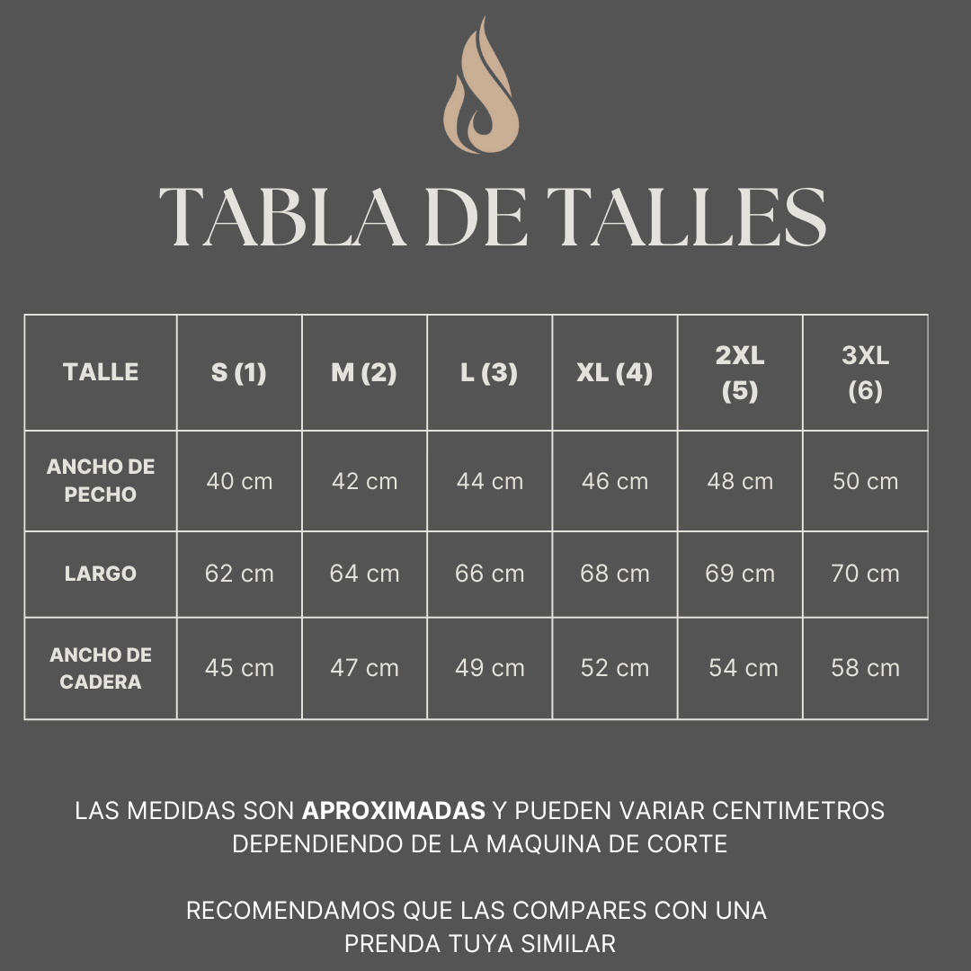 » Elegí tu talle! Te recomendamos que comprares las medidas de la tabla de talles con alguna prenda tuya similar!